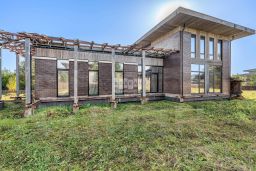 Данный дом построен на надежном монолитном фундаменте и имеет прочную каркасную структуру. Стены возведены из керамического кирпича, а фасад отделан высококлассным немецким клинкерным кирпичом KLINKER GRUPPE. Для оформления декоративных панелей и кровли использована качественная лиственница.