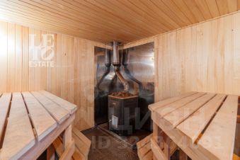 Пристройка блок с фиброцементным сайдингом. Бассейн 8,2х3,7 м (глубина 1,25-1,7 м), сауна с дровяной печью, гостевая комната с санузлом и собственным выходом наружу.
