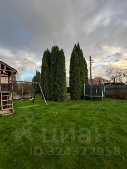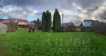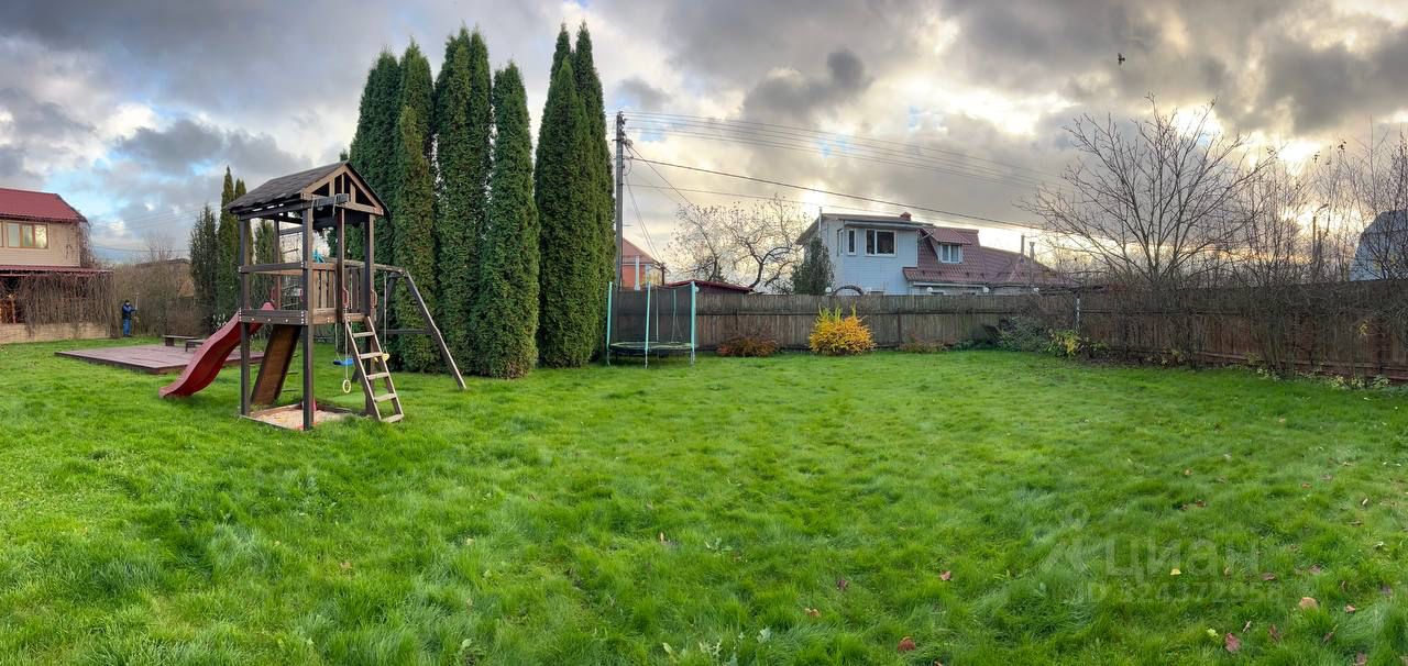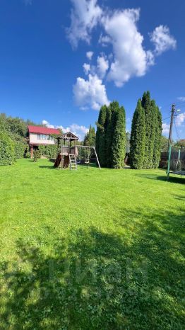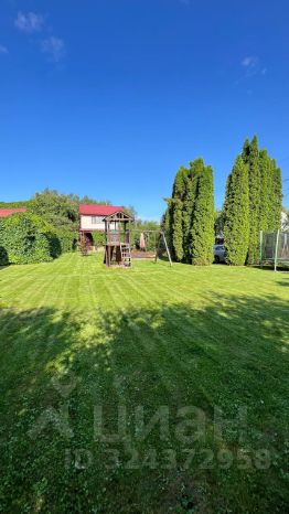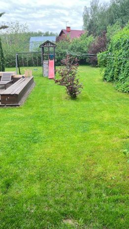Участок правильной формы, 20 лет назад выровнен по технологии и посажен спортивный густой газон, который подстригали каждую неделю. На участке: газон, деревья (вишни) и мелкие кусты по забору, туи (у парковки), детская площадка, парник.