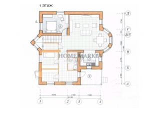 1й этаж: просторная гостиная с обеденной зоной, кухня, 2 спальни, гардеробная, кладовая, санузел.