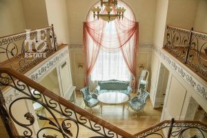 Первый этаж: парадная прихожая, видовая гостиная со вторым светом, столовая, кухня, летняя крытая терраса, кладовая, гостевая спальня, санузел с душевой кабиной, котельная, гараж на 2 автомобиля с автоматическими воротами, постирочная-гардеробная;
