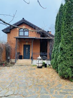 на участке Дом небольшой использовался как гостевой , дом из поризованного кирпича , обложен отделочным кирпичом , крыша керамическая черепица , стены штукатурка и обои