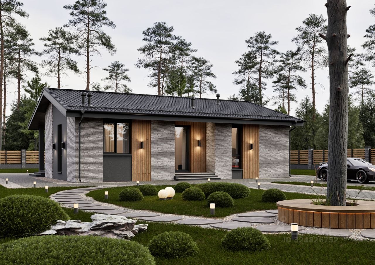— Фасад — комбинация плитки, дерева и декоративной штукатурки
