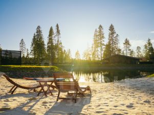— Пляж с пирсом и теплым прудом (подогрев круглый год)