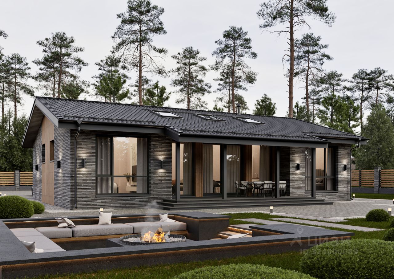 Роскошный одноэтажный дом в новом посёлке Юрьево Берег на большом земельном участке.