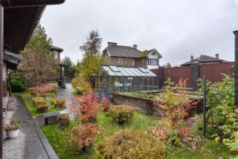 На участке сделан ландшафтный дизайн и автополив, на котором высажены различные сорта деревьев, в том числе плодовых и кустарникb. Ежегодно собираем большой урожай: клубники, голубики, крыжовника, смородины, малины.