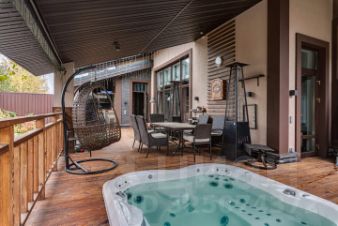 - Большая терраса на которой расположена зона бара, зона столовой, джакузи для круглогодичного использования