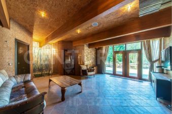 Четыре отдельных жилых пространства (110+60+50+50 м2) с мастер спальнями, гардеробами, санузлами и собственными выходами на веранды соединены просторной гостиной с камином, общей площадью 120 м2. Большой светлый кабинет создает комфортную обстановку для работы. В отделке использовались только высококачественные, натуральные материалы. Вся мебель от ведущих европейский производителей изготавливалась по индивидуальному заказу.