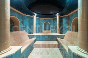 СПА расположен в отдельном крыле, оно соединяется с жилой частью красочной галереей с панорамными окнами и зимним садом. Есть спортивный зал, бассейн 12*5 метров, джакузи, хамам, сауна, баня, купель.
