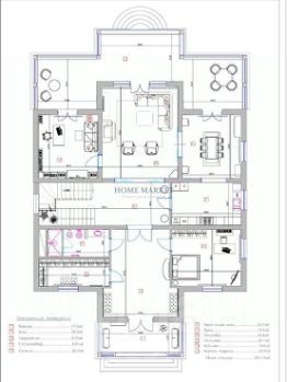 Первый этаж: просторная кухня-столовая с выходом на закрытую террасу, , гостиная с камином, прихожая, гардеробная , с/у гостевая спальня, кабинет