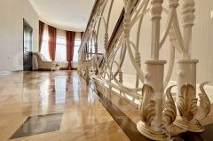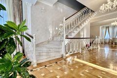 На втором этаже расположена спальня хозяев дома со своей ванной и комнатой и гардеробом, здесь же расположены 3 независимые спальни с прекрасными видами из окон, просторная ванная комната с ванной у окна, полукруглая комната-кабинет.