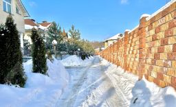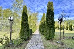 Дом расположен на ровном и полностью огороженном участке ИЖС площадью 11 соток с ландшафтным дизайном, парковкой на 2 машины, зелеными деревьями и кустарниками, рядом с участком - прекрасный парк у пруда и беседка. Въезд на огороженный участок оборудован автоматическими воротами.