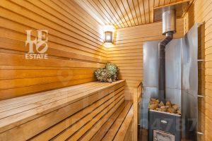 Цокольный этаж расположен под всей частью дома и включает в себя комфортную зону отдыха с сауной и бильярдом, винную комнату, постирочную, комнату для персонала с собственным выходом на участок, котельную.
