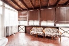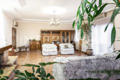 Планировкой предусмотрены: просторные гостиная-столовая, кухня с выходом на уютную веранду, 5 спален (одна из которых расположена на 1 этаже), комната отдыха/спортзал, сауна, и много практичных вспомогательных бытовых и технических помещений. Гараж на 3 машино-места с дополнительным крытым паркингом.