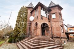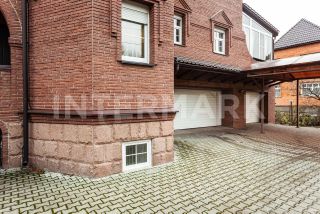 В отделке фасада использованы немецкий клинкерный кирпич, гранит. Кровельное покрытие - натуральная черепица.