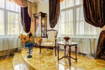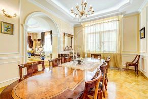 Дом представляет собой капитальное строение (монолит-кирпич) с толщиной наружных стен 60 см и высотой потолков от 3,5 до 5 м. В доме 4 уровня - три этажа и цокольное помещение.