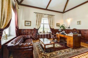 В бильярдной комнате и библиотеке на потолке установлены балки из европейского красного дерева (пр-ва Словения). В доме (гостиной и библиотеке) положен Шереметьевский дубовый паркет.