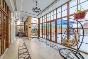 Основная площадь дома составляет 620 кв.м., дополненная баней (380 кв.м.), беседкой (50 кв.м.) и гаражем (168 кв.м.) на живописном участке площадью 24.13 сотки.