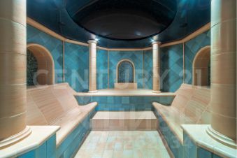 СПА расположен в отдельном крыле, оно соединяется с жилой частью красочной галереей с панорамными окнами и зимним садом. Есть спортивный зал, бассейн 12*5 метров, джакузи, хамам, сауна, баня, купель.