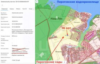 Продается участок площадью 16,00 соток, состоит из 2-х участков по 8,00 сот. No 35 и No 36 на новой схеме поселка. Можно объединить в один участок.