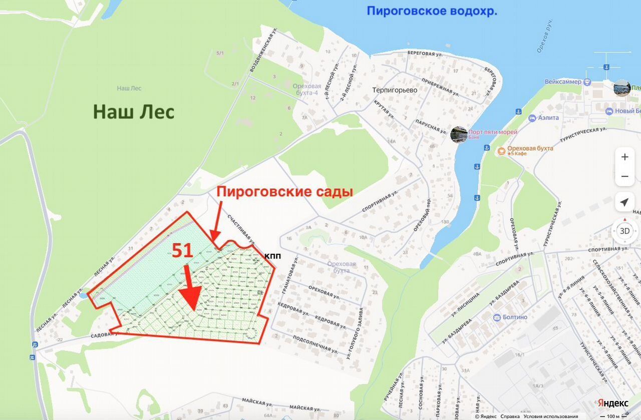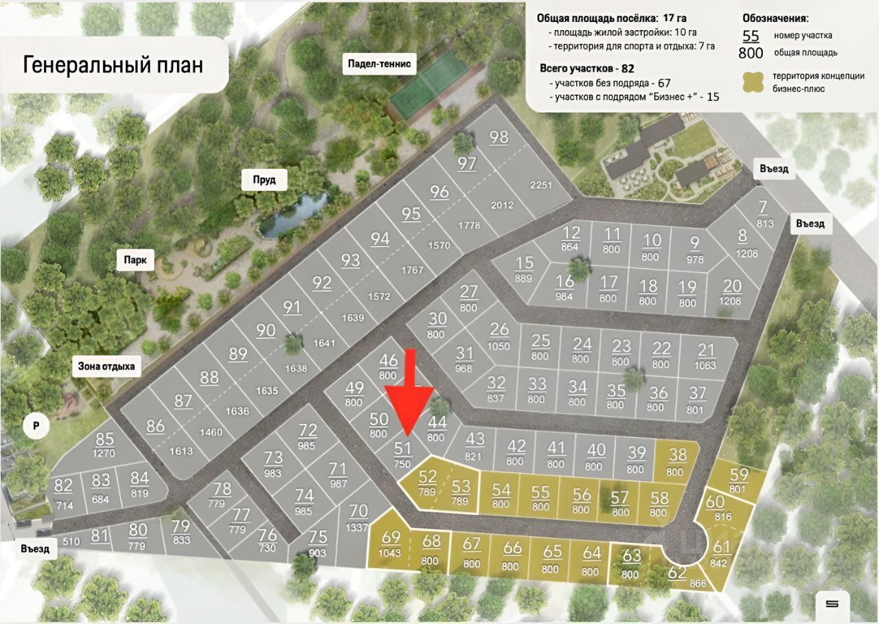 Продается участок площадью 7,50 соток, No 51 на схеме поселка.