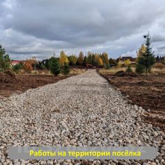 Работы в посёлке начаты недавно: проведена расчистка территории, строятся дороги, реконструирована подъездная ул. Счастливая.