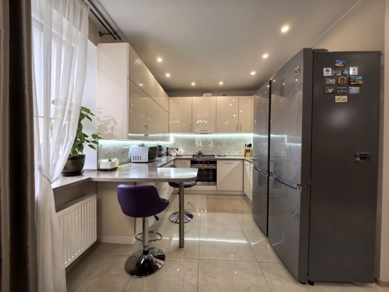 Кухня функционально оборудована техникой- полноразмерной посудомоечной машиной Воsсh, газовой плитой и электрической духовкой Кuрреrsbеrg, двумя холодильниками LG.