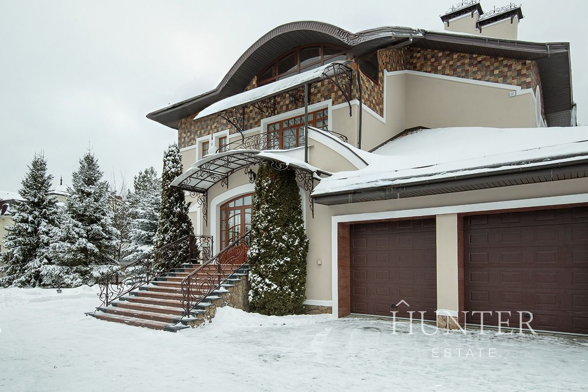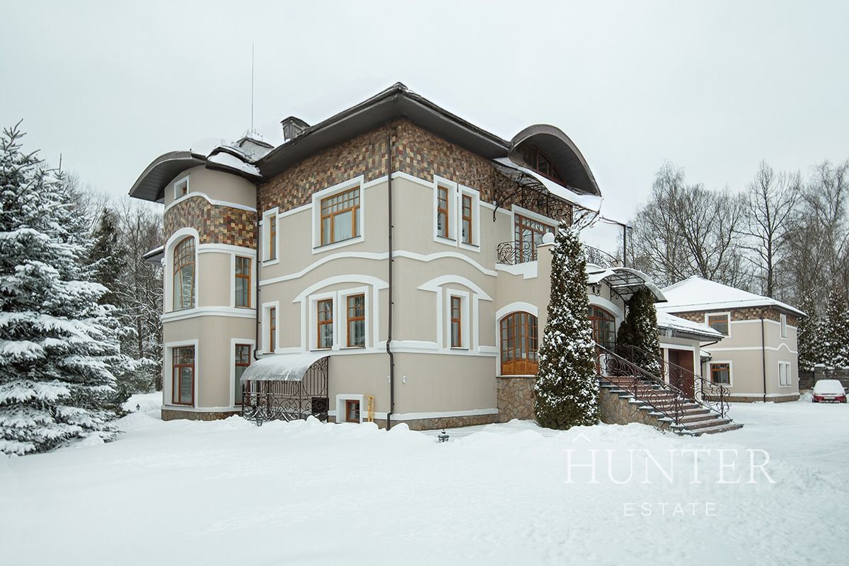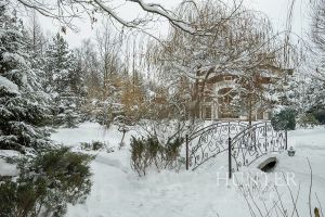 На участке выполнен ландшафтный дизайн, посажены: декоративные растения и кустарники, 5 видов сосен, кедр, пихты. Тротуары вымощены камнем и гранитом, установлено ландшафтное освещение. В центре участка находится декоративный пруд голубиной 3 метра с ручьем и водопадом. На участке помимо основного дома построены беседка с печью для приготовления блюд, дом для персонала, и гараж для мототехники.