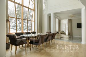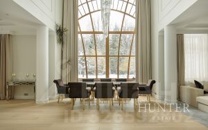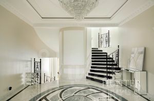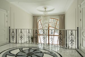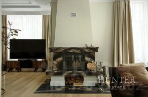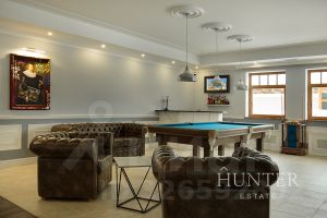 - Первый этаж: холл, кабинет, гостиная со вторым светом и камином, кухня-столовая с выходом на террасу, с/у. Зона СПА: бассейн, бильярдная с баром, боулинг.