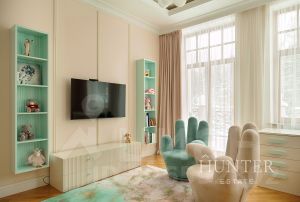 - Второй полуэтаж: мастер спальня с малой гостиной, выходом на балкон, гардеробной и ванной.