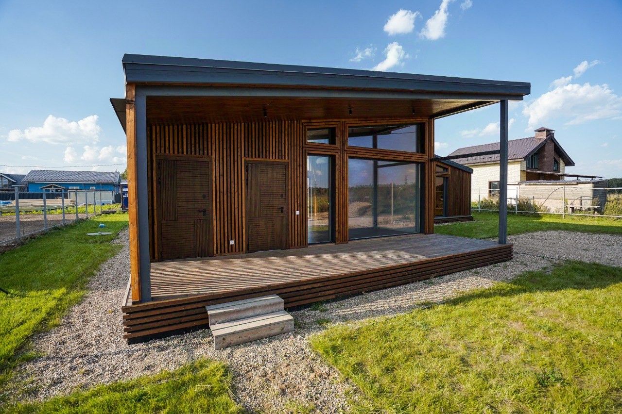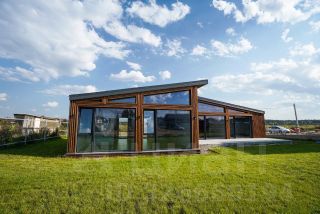 Одноэтажный каркасный дом 2024 года постройки, площадью 160 м² на участке 7 соток.