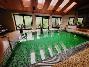 1 этаж: прихожая, гардеробная, зал, кухня, гостиная, гостевой с/у, бассейн (собственно бассейн, сауны, 2 душа, с/у, раздевалка, собственные выходы на улицу).