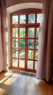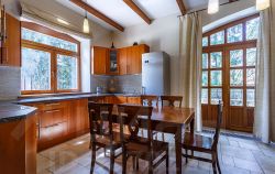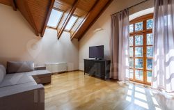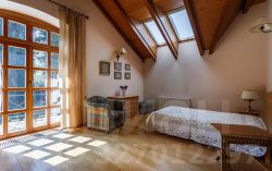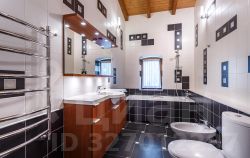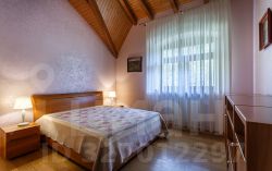 На первом этаже кухня-гостиная с камином и выходом на террасу, две спальни, санузел, сауна с душем, прачечная и котельная с отдельным входом (немецкое оборудование Viessmann). На втором этаже четыре спальни с панорамными и мансардными окнами, два санузла, балкон.