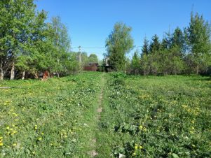 Ровный участок правильной формы с круглогодичным подъездом по асфальтированной дороге, газ и электричество по границе. Участок не облагорожен, растет несколько старых яблонь и местами сорный кустарник. В пятиста метрах от участка открыли Мираторг и пункты выдачи Озон/Вайлдберриз, чуть подальше - остановка общественного транспорта,