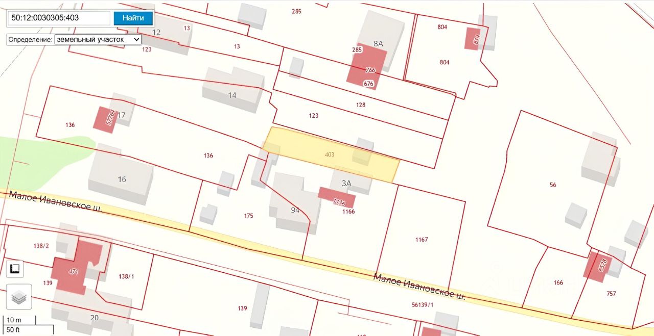Расположение участка можно посмотреть на кадастровой карте по номеру 50:12:0030305:403