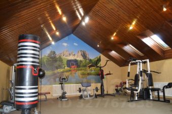 2 этаж- спортивный зал 55 кв.м., оборудованный тренажерами и беговой дорожкой.