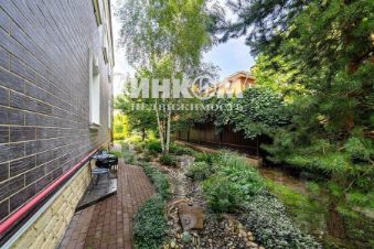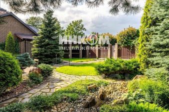 На участке выполнен профессиональный ландшафтный дизайн, благоустройство и озеленение: система автополива, система освещения с подземной прокладкой кабелей, высажены хвойные и лиственные деревья, многолетние растения, сухой ручей, зона отдыха у костра, партерный газон.