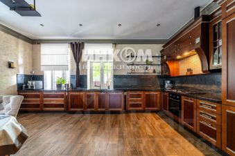 Коммуникации: эл-во 15 кВт, газ магистральный, центральная канализация, собственная скважина с многоступенчатой системой подготовки и очистки воды (есть возможность подключения к центральному водоснабжению), интернет - оптоволокно. Тёплые водяные полы на 1-м этаже и во всех с/у.