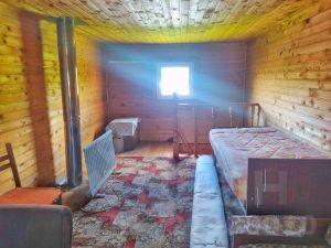Дом каркасный, двухэтажный построен на ленточном фундаменте. На первом этаже расположена: две комнаты и кухня. Установлен металлический дровяной котел. На втором (цокольном) этаже - спальная комната. Вода: колодец. Газ по границе. Электричество подключено к дому. Крыша покрыта металлическим профлистом. Для въезда на участок есть ворота.На участке есть гараж и бревенчатая дровяная баня.