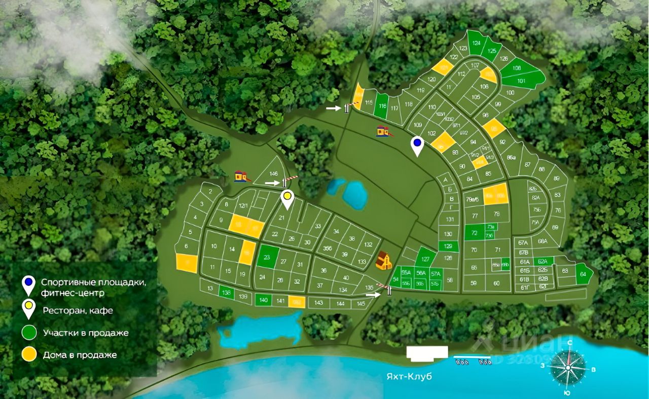 -собственный яхт-клуб и пристань на 40 судов;