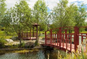 Помимо основного дома на участке расположены: беседка, крытый гараж с навесом, парковка для велосипедов, квартира для персонала.