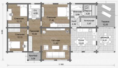 + В доме сауна с эффектом русской бани, электрическая печь с парогенератором.