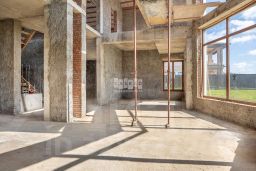 Дом выполнен по индивидуальному проекту из керамического кирпича, межкомнатные перегородки также сделаны из полнотелого кирпича. Установлены высококачественные дорогие деревянные окна. Фасад облицован декоративной плиткой, а крыша покрыта гибкой черепицей. Все центральные коммуникации подведены к дому, включая газ.