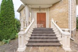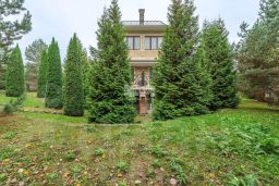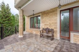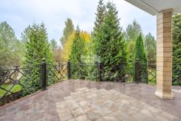 Также имеется гараж на три автомобиля и квартира для персонала. Участок обустроен с многоуровневым ландшафтным дизайном, с высаженными вдоль дорожек елями и туями. Всего в минуте ходьбы находится яхт-клуб и Клязьминское водохранилище, а до МКАД всего 5 минут на автомобиле.
