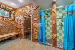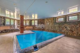 Внутри дома имеется лифт, который обслуживает каждый этаж, а также великолепная лестница, созданная из дуба. На цокольном этаже находится спа-зона с бассейном и хаммамом, душевыми и зоной для отдыха. Здесь же расположены оружейная комната, прачечная, санузел, котельная с отдельным выходом на улицу и кладовая.