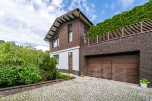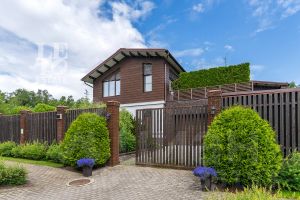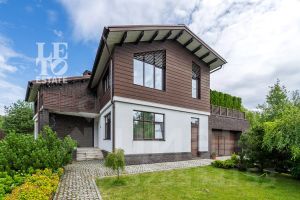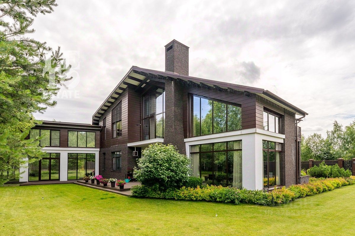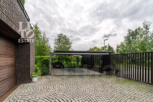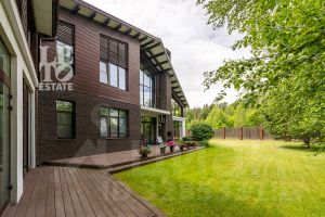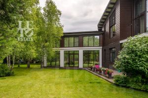 Архитектура дома выдержана в современном стиле с элементами классики. Внешняя отделка дома представляет собой комбинацию из фасадного кирпича, декоративной штукатурки и HPL панелей. Большие окна наполняют внутреннее пространство дома светом и воздухом. Дом построен по индивидуальному проекту с использованием высококачественных дорогостоящих материалов.