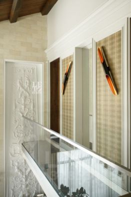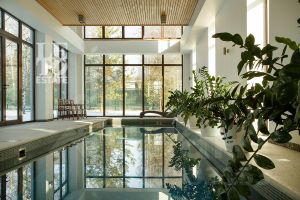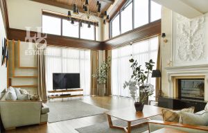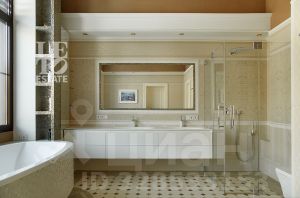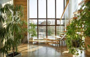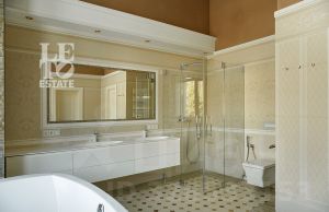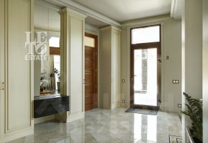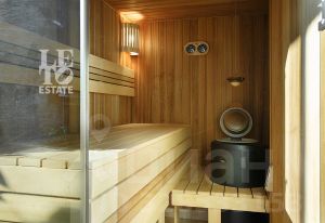 Внутренняя отделка дома перекликается с внешней и выполнена в приятных спокойных тонах. Полы первого этажа отделаны плиткой и паркетной доской. На втором этаже в отделке пола использовалась паркетная доска и натуральный паркет (в мастер-спальне). В доме организована система приточно-вытяжной вентиляции и кондиционирования. Мебель и техника от ведущих мировых брендов. Внутри дома организован собственный спа-комплекс с бассейном, сауной и хамамом.