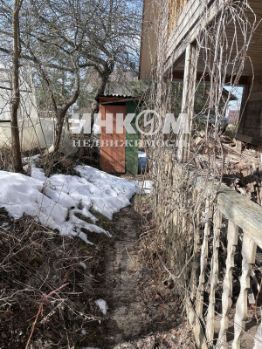 Продается участок прямоугольной формы с летним 2-х этажным деревянным домом-баней площадью 40 кв.м. В доме печное отопление, на первом этаже - комната, предбанник и баня, на втором этаже - комната с балконом. Подведено электричество, газ проходит по границе участка. На территории есть колодец, две хозяйственные постройки, плодовые деревья (яблони, сливы) и ягодные кустарники (крыжовник, смородина).