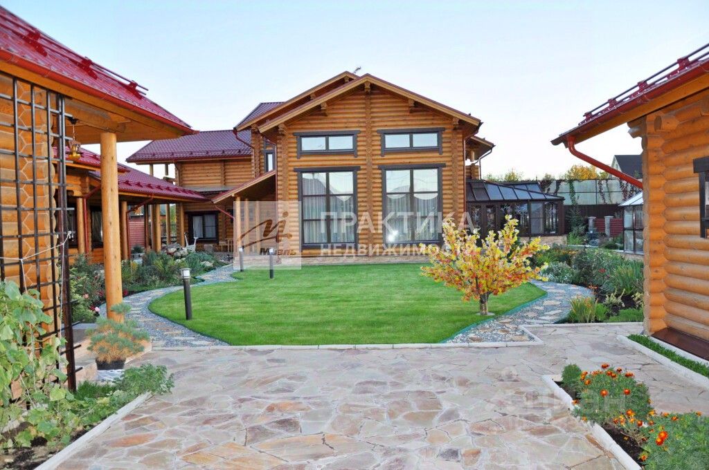 На 15 сотках выполнен ландшафтный дизайн, хороший густой газон, высажены декоративные растения, вымощены дорожки, выполнено освещение и система автополива.