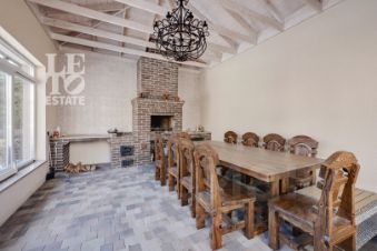 410 м² с эксплуатируемым цоколем с сауной, две кухни, огромная гостиная с дровяным камином, 4 гардеробные, две застекленные террасы с теплым полом. Также можно встречать гостей в барбекю-лофте с печью;